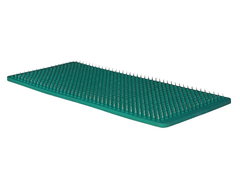 "Колючий врачеватель" аппликатор КВ-100Р выполнен в виде прямоугольной пластины размером 10 см х 20 см из медицинской резины с металлическими скобками из нержавеющей стали.