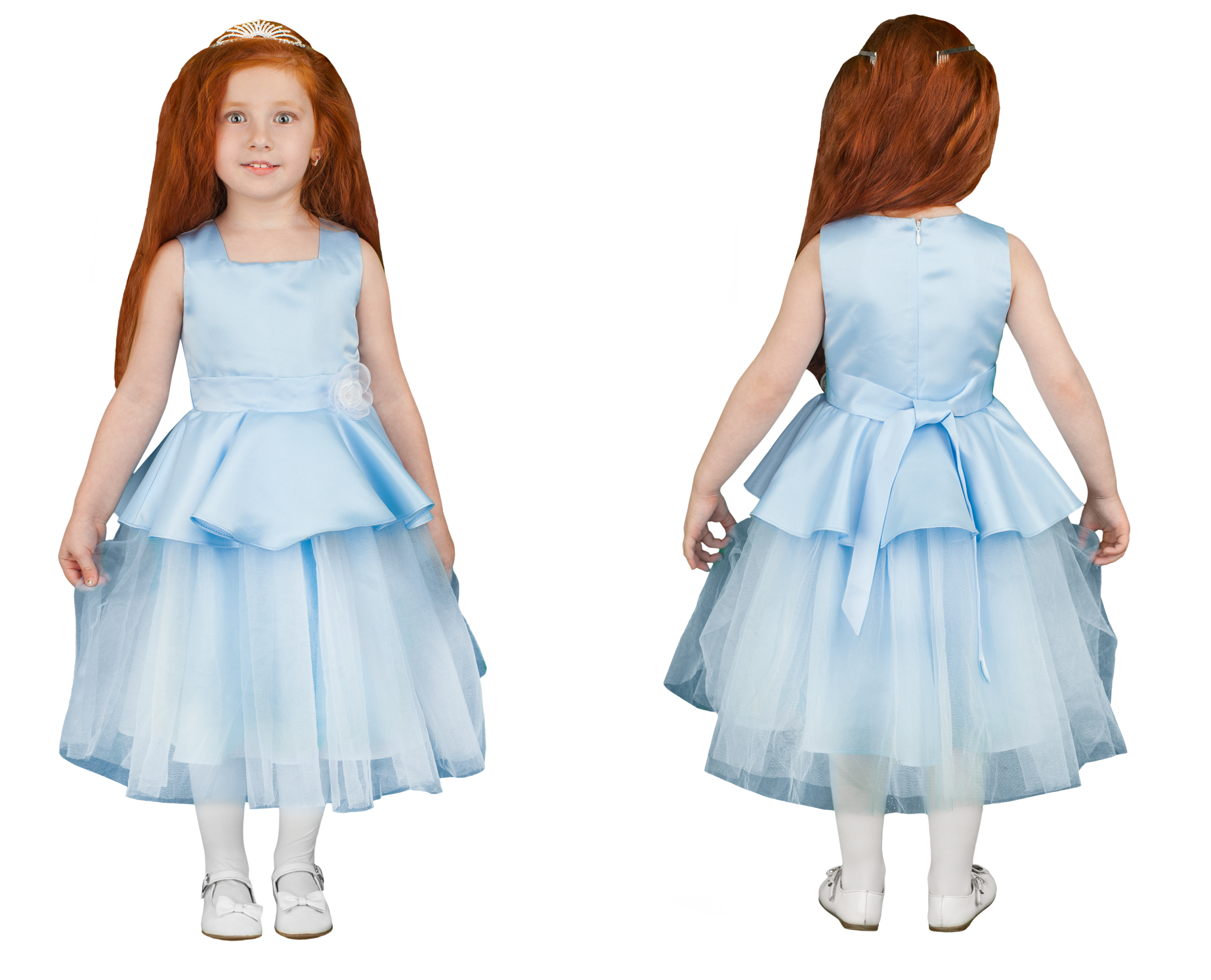 Пышное платье с многослойной юбкой и баской - идеально подходит как для новогоднего праздника, так и для выпускного в детском саду или празднования Дня рождения малышки.