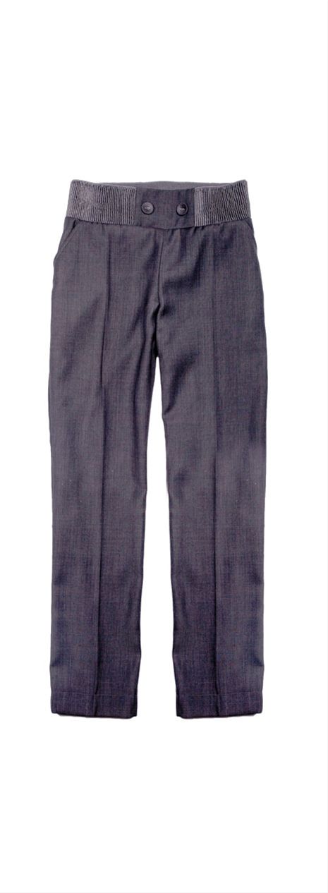Брюки со стрелкой, чуть зауженные книзу – самый популярный силуэт. Пояс-резинка – супер удобно, карманы по бокам – практично. Благородный серый цвет универсален, прекрасно сочетается с моделями любого цвета. Декоративные пуговицы на поясе изделия – фишка модели.