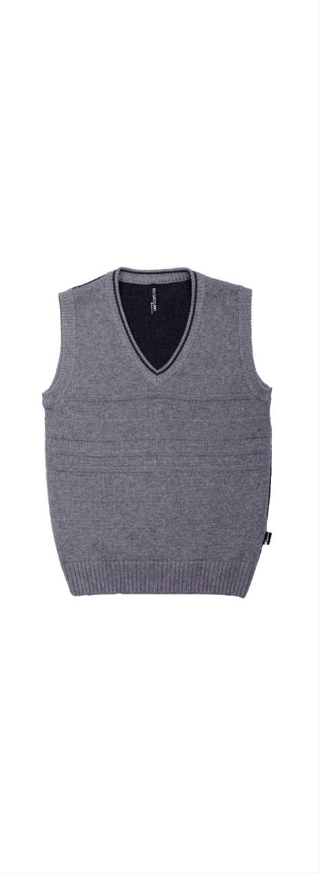 Вязаный жилет из 100% хлопка «спокойных» расцветок. Декорирован контрастными полосами по полочке изделия. Хорошо сочетается как с классическими брюками, так и с брюками в более непринужденном стиле. В отделке нет ничего лишнего: окантовка горловины, пройм и низа изделия. Модель с V-образным вырезом любима многими мальчиками, удобна в носке и неприхотлива в уходе.