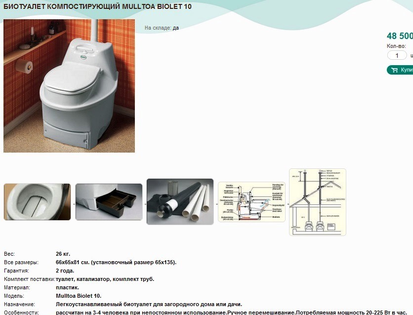 Модель BioLet Mulltoa 10 является основной моделью компостирующих туалетов BioLet. BioLet Mulltoa 10 имеет удобно расположенную ручку (для ручного перемешивания), которая поворачивается после каждого использования. Такая простая эксплуатация обеспечивает правильное перемешивание компоста и ускоряет деятельность микробов. BioLet Mulltoa 10 имеет всё необходимое для качественного компостирования. Как и все другие модели BioLet, модель Mulltoa 10 оборудована компостерной крышкой, которая скрывает материал и открывается автоматически при сидении. Ещё одна положительная особенность, разработанная эксклюзивно для BioLet, заключается в том, что, имея сиденье высотой всего лишь 50см, BioLet Mulltoa 10 очень удобен в использовании и не имеет неудобных ступенек или скамеек, которые мешают детям и пожилым людям. Благодаря надёжной и проверенной временем технологии, BioLet Mulltoa 10 является хорошим приобретением для вас и приносит пользу окружающей среде. Компост, находящийся в поддоне, легко достать и опорожнить. Принцип действия: твердые и жидкие отходы перемешиваются, разлагаются, и высушиваются благодаря: